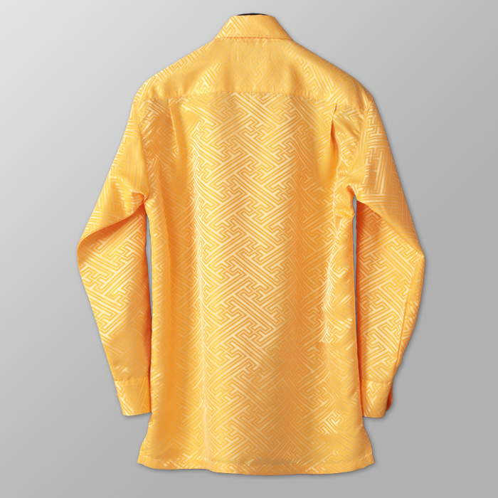 複雑で大胆な卍柄を織り込んだジャガード生地のシャツは、光が当たると、卍柄が一層際立ちゴージャスなイメーシを演出してくれます。